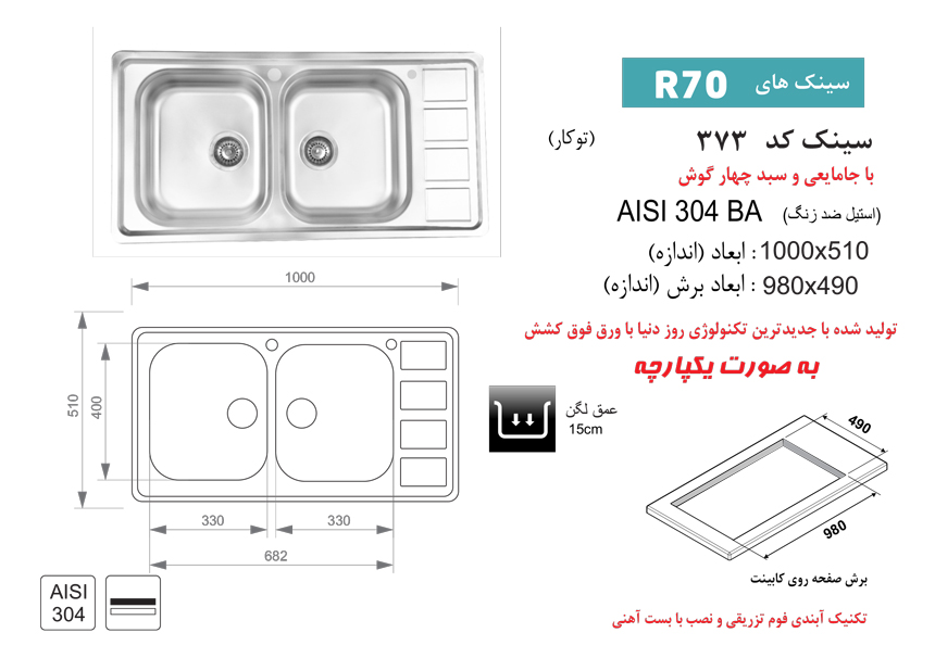 سینک ظرفشویی روکار اخوان مدل 303