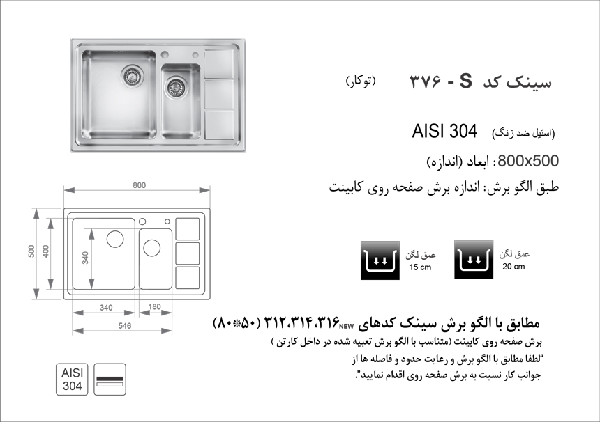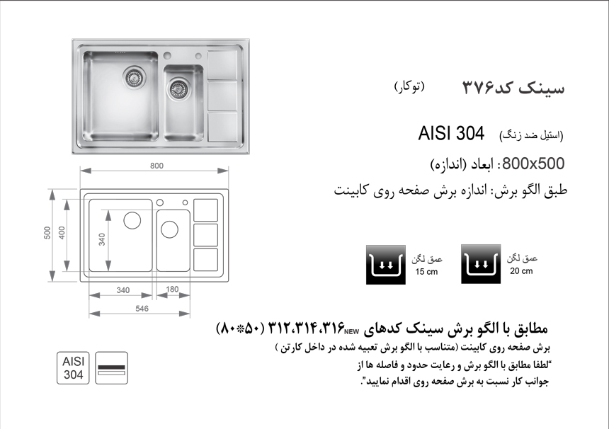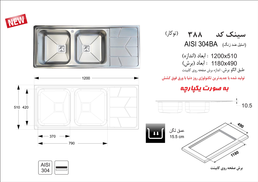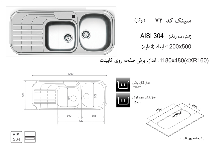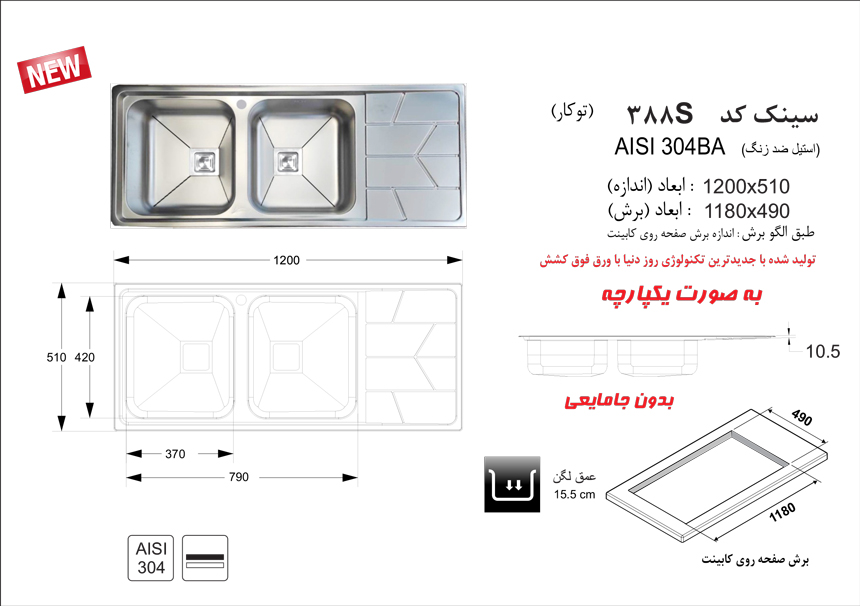 سینک ظرفشویی روکار اخوان مدل 148NEW