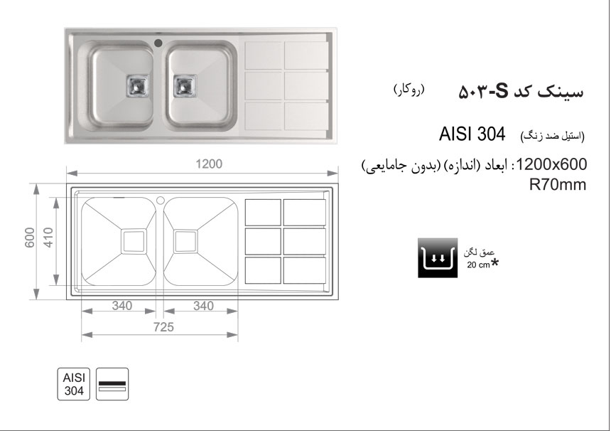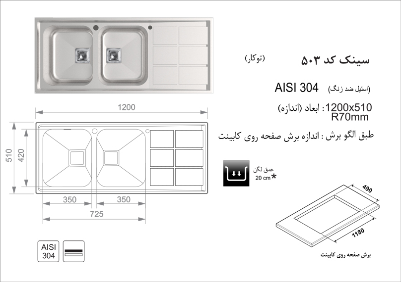 سینک ظرفشویی زیرکار اخوان مدل 410