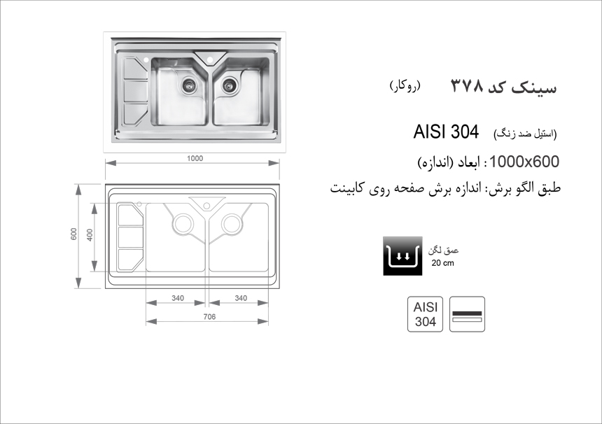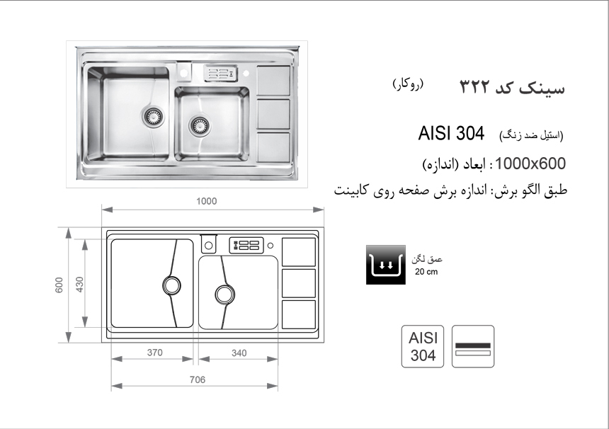 سینک ظرفشویی زیرکار اخوان مدل 411