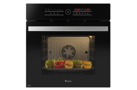برنامه های پخت به زبان فارسی سیستم گرمایش پایین، بالا و پشت : برق پوشش دیواره های لعابی easy to clean جنس دستگیره آلومینیومی با پوشش آنادایز دارای ۱۳ برنامه پخت ترکیبی و نیمه اتومات دارای ۱۵ برنامه پخت اتوماتیک از طریق راهنمای پخت ترموستات جهت تنظیم دمای المنت برقی دارای ۲ عدد سینی دو طرف لعاب شده دارای شلف استیک پزی و روغن گیر دارای سیستم افزایش سریع دما دارای ۲ عدد لامپ فر ۲۵ وات دارای المنت گریل دارای موتور جوجه گردان دارای قفل کودک سیستم درب آسان باز شو مجهز به سیستم خنک کننده اتوماتیک دارای پوشش لعابی self clean (نظافت آسان) برای قسمت های دور از دسترس دارای شیشه شات سفید سکوریت شده مقاوم به حرارت و ضربه درب شیشه ای ۳ جداره و آرام بند مجهز به سیستم ایمنی خودکار قابلیت پخت معمولی، بریان و کباب کردن مجهز به سیستم یخ زدایی دارای عایق حرارتی الیاف سرامیکی دارای ریل تلسکوپی HETTICH دارای سنسور پخت گوشت (meat prob) برای اطمینان از مغز پخت شدن دارای فن کانوکشن جهت پخت یکنواخت غذا مجهز به سیستم پخت تاخیری دارای ساعت دیجیتال ( زمان حقیقی ) بددون تاثیر پذیری از قطع برق تا ۴۸ ساعت