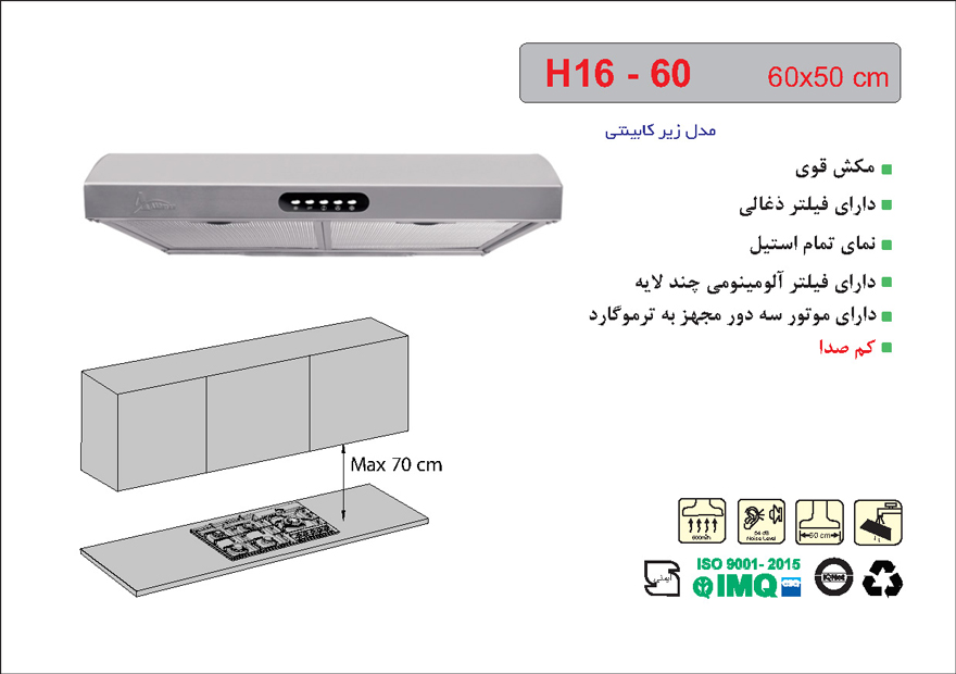 هود آشپزخانه زیرکابینتی اخوان مدل H16-60
