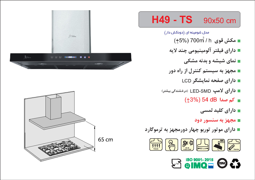 هود آشپزخانه شومینه ای اخوان مدل H49-TS