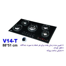 گاز اخوان مدل V14T دارای تایمر تاچ اسکرین برای 5 شعله به صورت همزمان