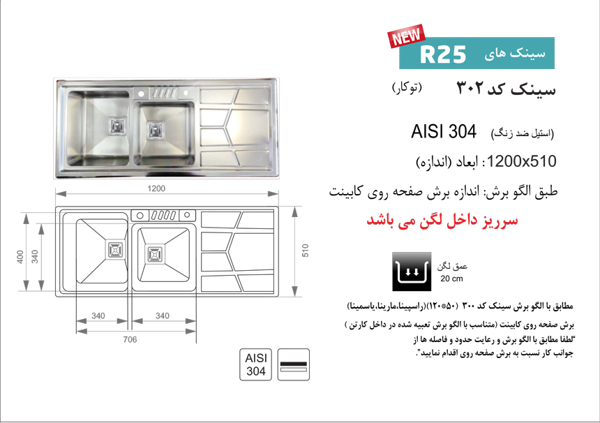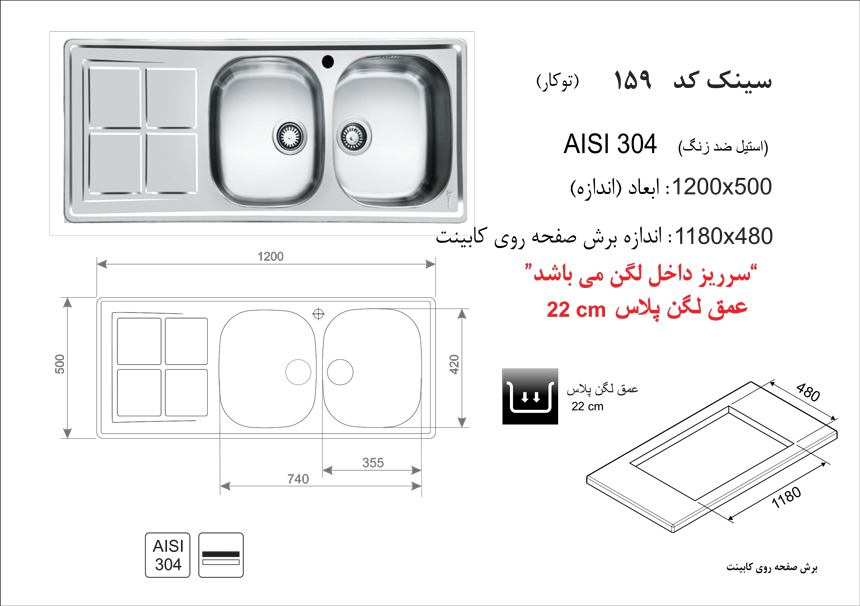 سینک ظرفشویی توکار اخوان مدل 501-S