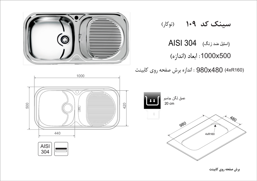 سینک ظرفشویی توکار اخوان 145