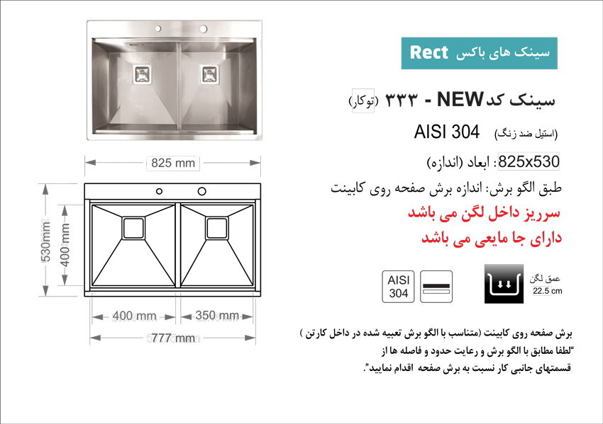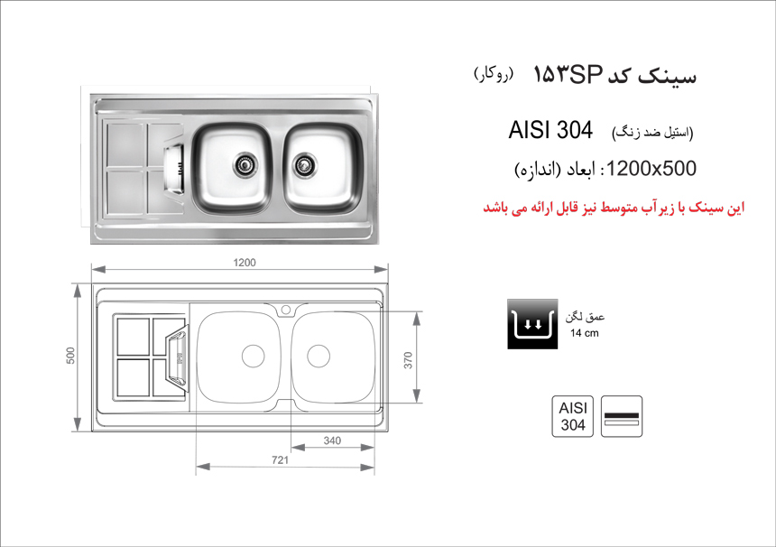 سینک ظرفشویی روکار اخوان مدل 303