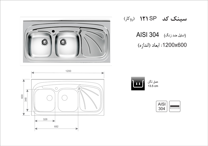 سینک ظرفشویی توکار اخوان مدل 161SP