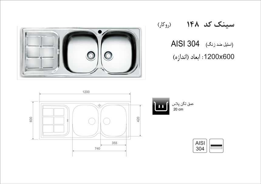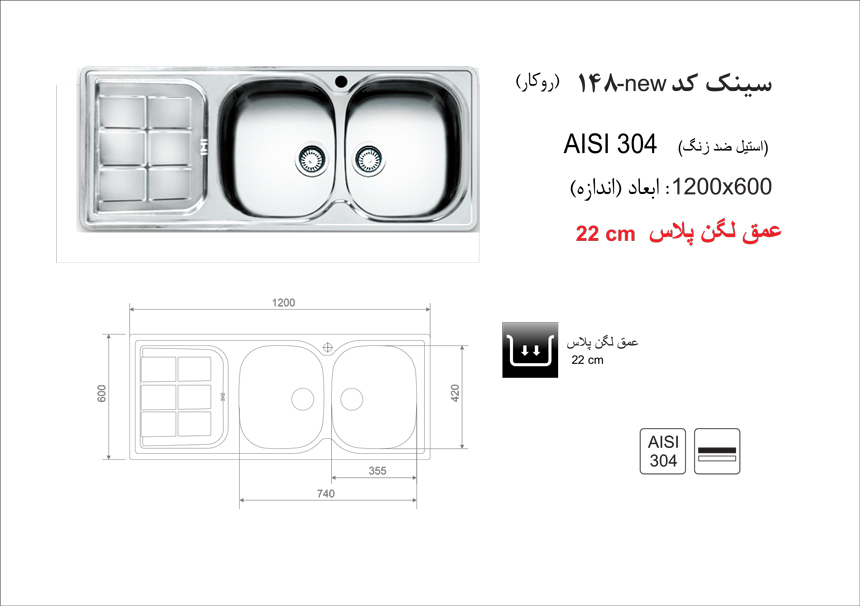 سینک ظرفشویی روکار اخوان مدل 148NEW