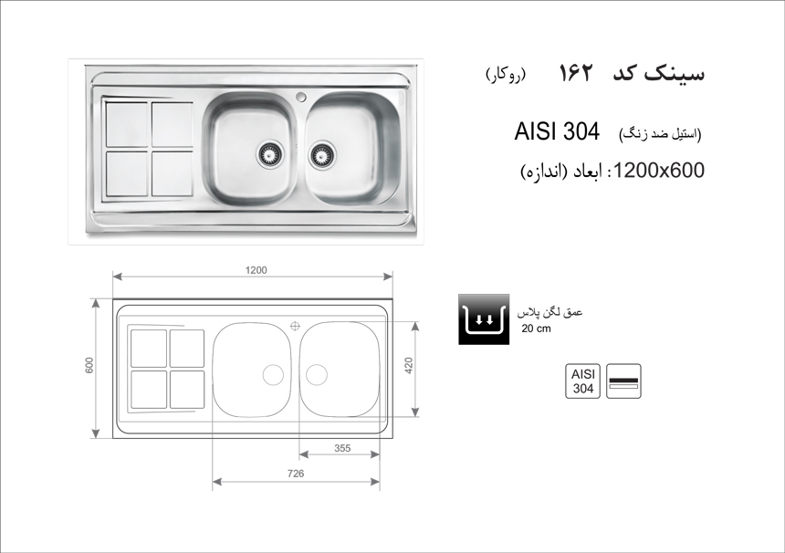 سینک ظرفشویی روکار اخوان مدل 162