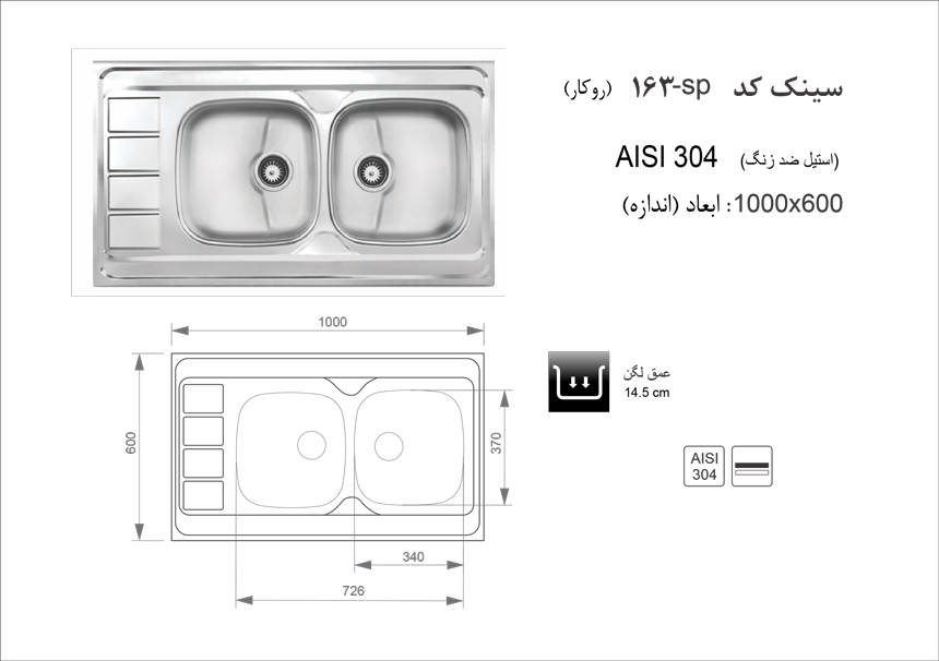 سینک ظرفشویی روکار اخوان مدل 163SP