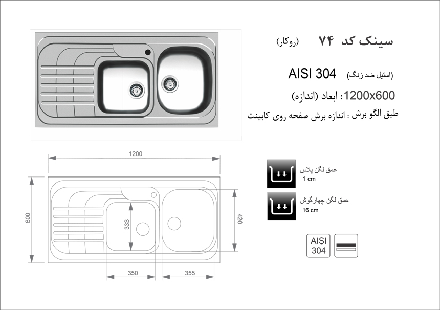 سینک ظرفشویی روکار اخوان مدل 74