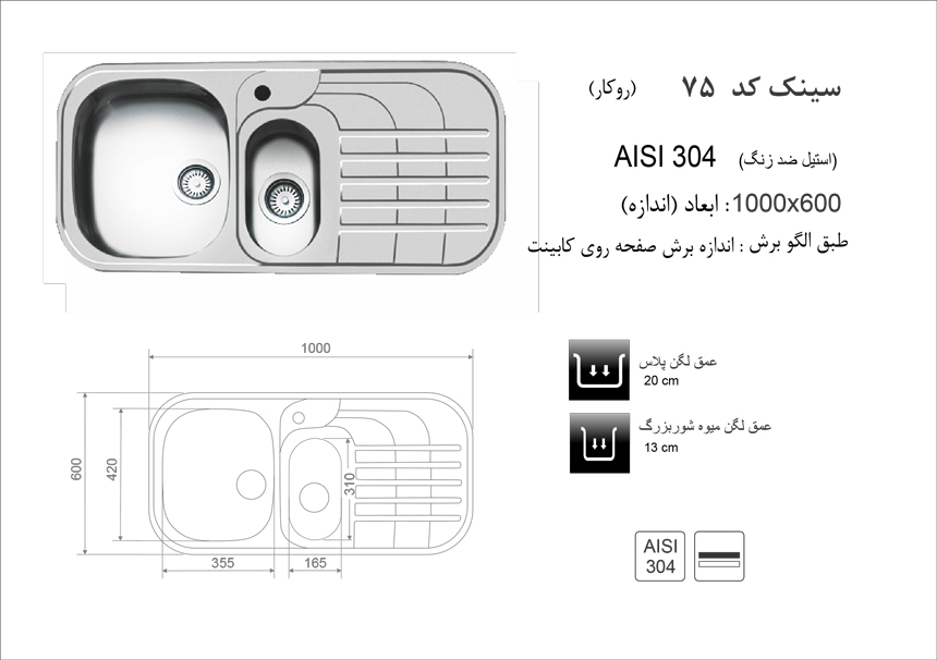 سینک ظرفشویی روکار اخوان مدل 75