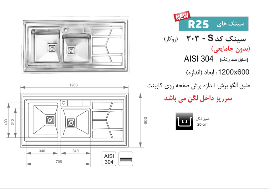 سینک ظرفشویی روکار اخوان مدل 303S