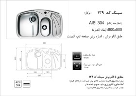 توضیحات مختصر درباره سینک اخوان توکار 139دارای استاندارد اروپا و ایراندارنده گواهینامه رعایت مصرف کنندگان در سال ۱۳۹۲برنده تندیس طلایی کیفیت از سویس و آلماندارای ۱۰ سال ضمانتدارای بست فلزی و نوار آب بندیخدمانت پس از فروش گسترده در سراسر کشوربزرگترین تولید کننده سینک در خاورمیانهبرگزیده زرین کنگره ملی حماسه اقتصادی در سال 1392