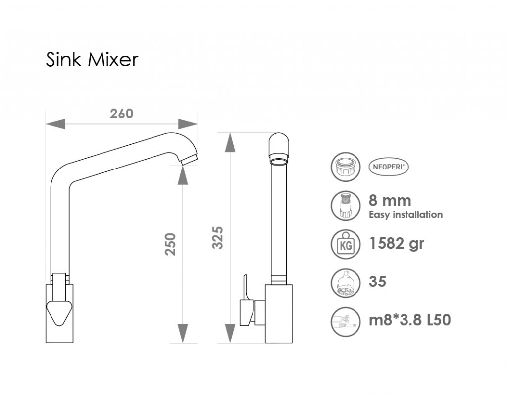 شیر ظرفشویی آشپزخانه راسان مدل هیپو