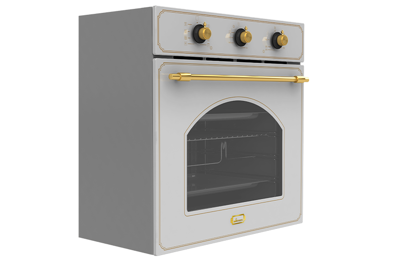 دارای سیستم خنک کننده اتوماتیک درب شیشه ای ۲ جداره با قابلیت آسان بازشو سیستم گرمایش پایین، بالا و پشت : برق دارای ۸ نوع برنامه پخت نیمه اتوماتیک پوشش دیواره های لعابی easy to clean دارای عایق حرارتی از جنس الیاف سرامیکی دارای دستگیره با آبکاری طلایی و طرح کلاسیک مجهز به فن کانوکشن جهت پخت یکنواخت مواد غذایی مجهز به سیستم یخ زدایی دارای المنت گریل مجهز به سیستم ایمنی خودکار دارای ولوم برنجی طرح کلاسیک دارای موتور جوجه گردان شیشه سکوریت سفید با طرح کلاسیک و مقاوم به حرارت و ضربه دارای پوشش لعابی self clean (نظافت آسان) برای قسمت های دور از دسترس دارای تایمر مکانیکی پخت ۱۲۰ دقیقه ( با قابلیت پخت بدون تایمر ) دارای ۲ عدد سینی دوطرف لعاب شده دارای شلف استیک پزی و روغن گیر دارای ۴ عدد المنت حرارتی با قابللیت تولید حرارت مستقیم و غیر مستقیم