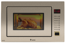 ویژگی ها دارای صفحه لمسی مجهز به قفل کودک دارای نمایشگر ساعت دارای میکروسوئیچ درب دارای موتور گردان سینی دارای سیگنال پایان پخت دارای سیستم پخت سریع دارای تایمر تنظیم زمان پخت قابلیت نصب به صورت توکار دارای ۸ برنامه پخت اتوماتیک بدنه داخلی تمام استیل (۳۰۴) دارای ۵ توان راه اندازی مایکروویو دارای سینی شیشه ای و ریل گردان سیستم باز کننده درب : قفل فشاری دارای سیستم یخ زدایی بر اساس وزن و دما