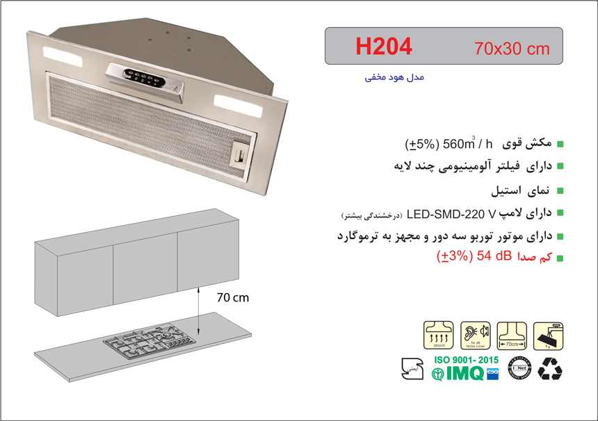 هود آشپزخانه زیرکابینتی اخوان مدل H16-60